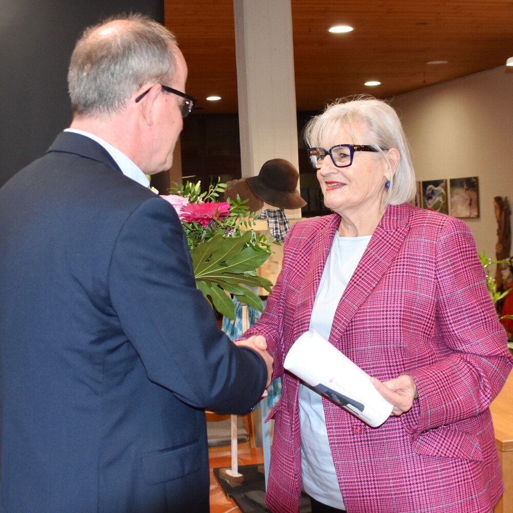 Vorstandsvorsitzende Ulrike Lang dankte Ruth Reinfurt im Namen des Vorstands für ihr großes Engagement und Geschäftsführer Wolfgang Meixner überreichte zum Dank und im Namen aller Mitarbeitenden einen farbenfrohen Blumenstrauß.
