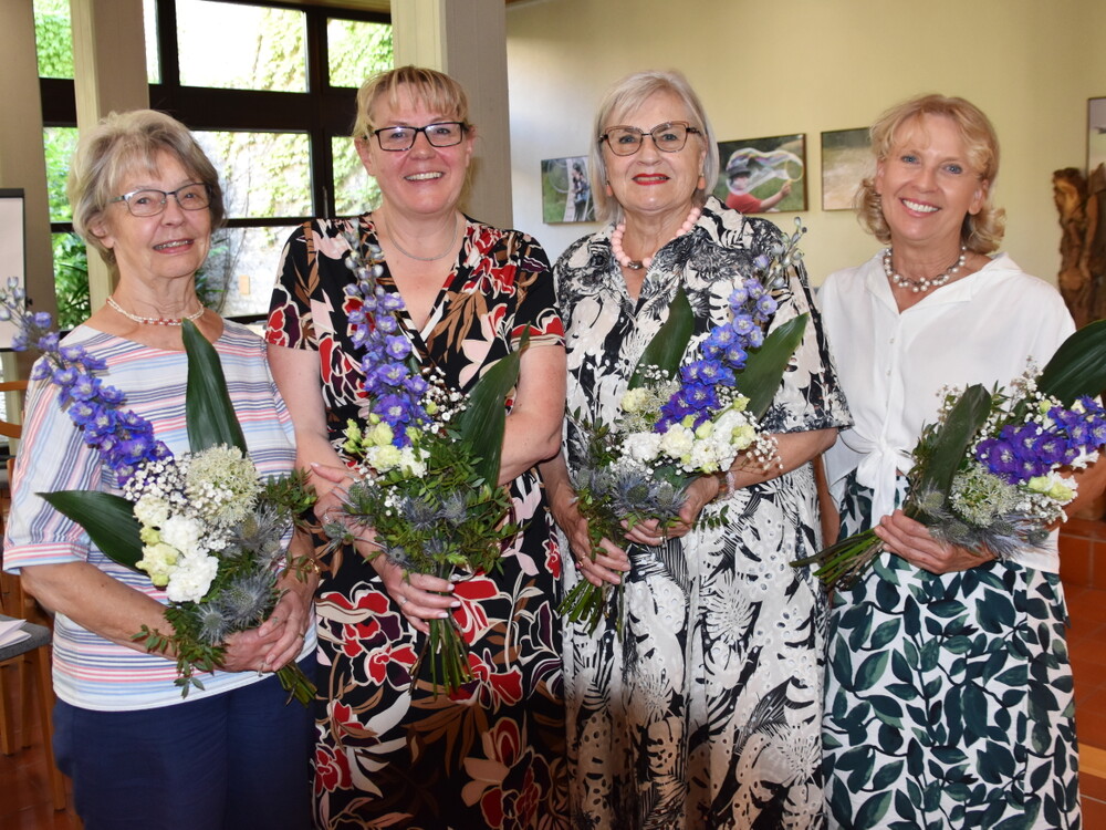 Die fünf amtierenden Vorstandsdamen (von links) Edeltraud Barth, Ulrike Lang, Ruth Reinfurt, Sigrid Maroske und Johanna Stirnweiß (fehlt auf dem Foto) stellten sich zur Freude der anwesenden Mitglieder für eine weitere Amtsperiode zur Wiederwahl. Dementsprechend eindeutig viel das Wahlergebnis aus: das bewährte Team wurde einstimmig für die kommenden vier Jahre wiedergewählt.
