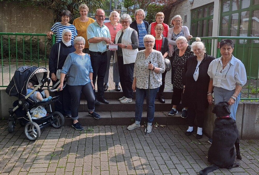 Dorothea Braun und die Damen vom Strick- und Bastelkreis überreichen die Spendensumme an Wolfgang Meixner vom SkF | Foto: D. Braun